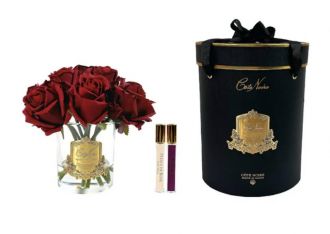 Букет из бутонов роз, цвет красный, 2 спр, прозрачная ваза, золотой декор, Red Rose Buds GOLD Badge , Cote Noire
