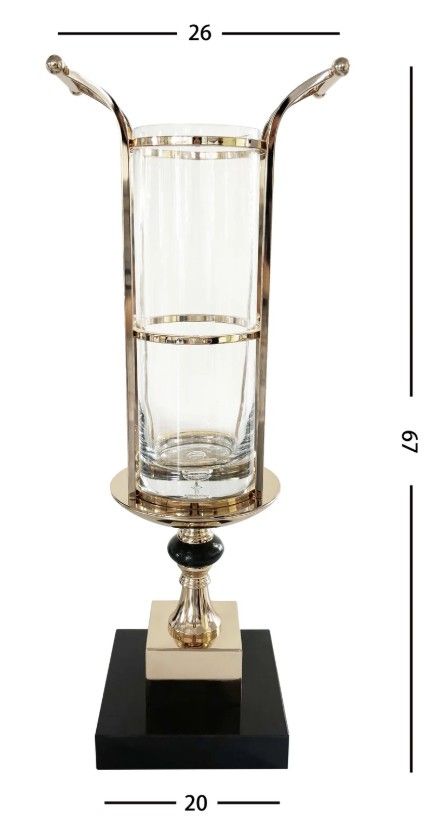 Ваза, черный мрамор, золотой декор, 77х31х26